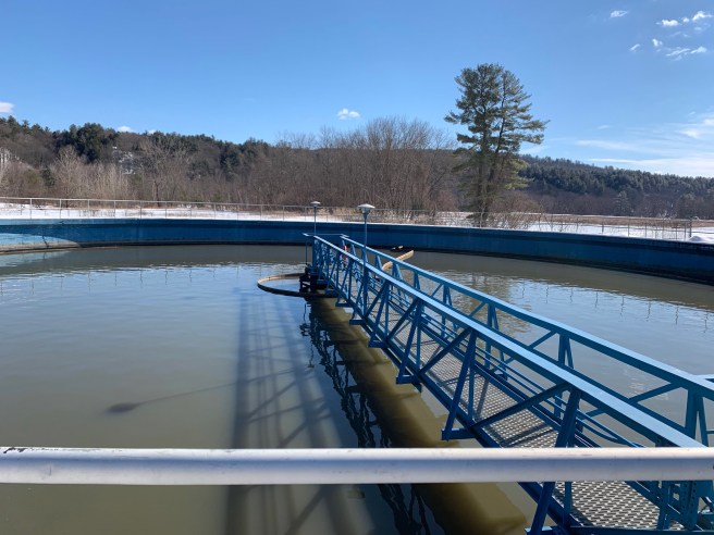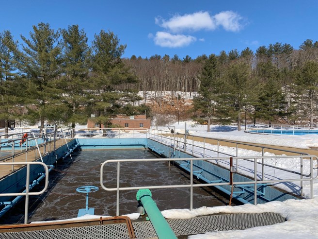On friday the twenty second, my AP environmental science class had the opportunity to go the wastewater treatment plant in Franklin New Hampshire. The trip started with Alan pulling into the road the treatment plant was connected to. One the right we could see a river and on the left we could see what looked like a man made pile of dirt, which Alan pointed out was actually landfill. We followed the road till we reached a series of buildings, most of them brick. We all hopped out of the buss and into the cold. Alan led us into one of the buildings where we were introduced to Art and Ken, workers at the plant.